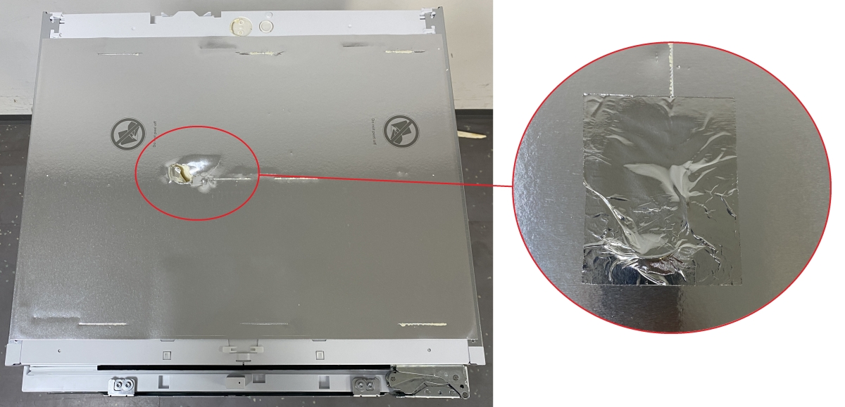 - Isolation eingedrückt, wurde mit Silberfolie ausgebessert