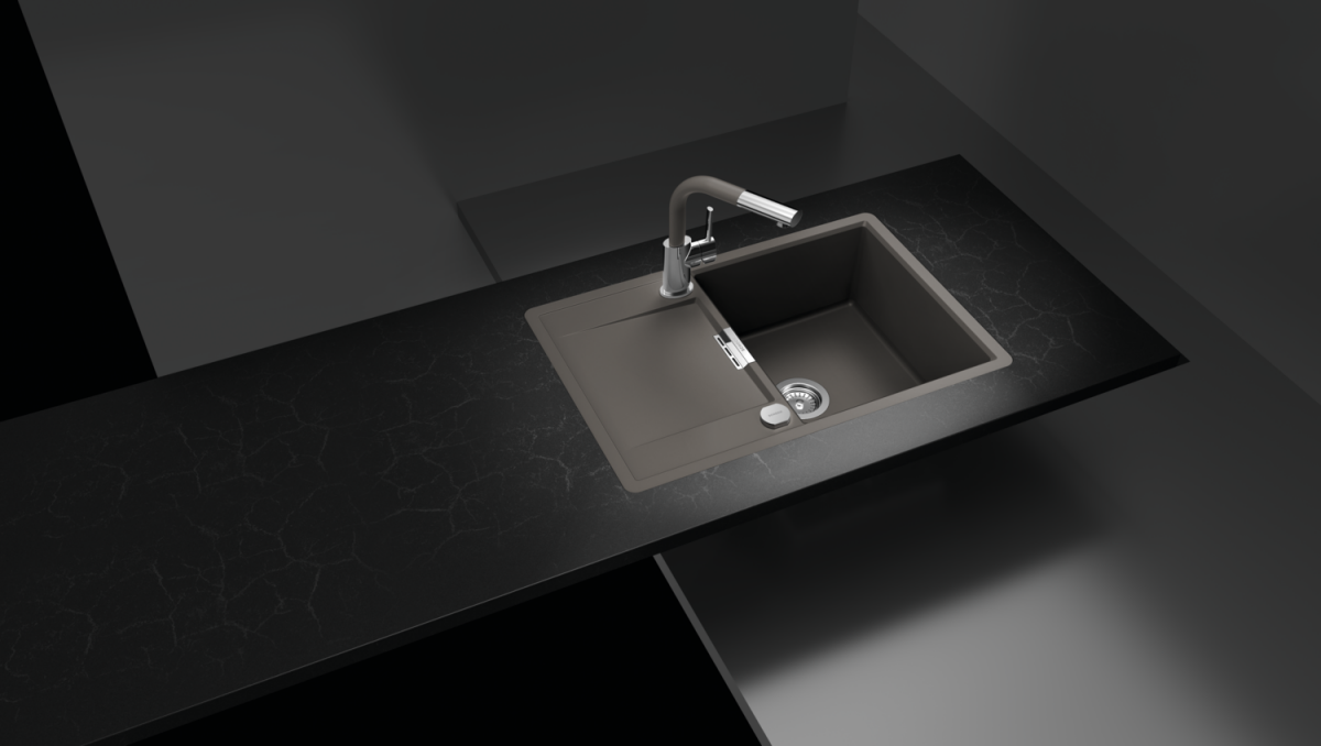 Das preisgekrönte Design der CRISTADUR®-Spüle Mono D-100 von SCHOCK wird durch den zusätzlichen, abgesenkten Ablauf und die kompakte Form ergänzt.