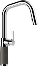 - Ausziehbarer Auslauf, Hochdruck, Strahl-Brausefunktion, Rückflussverhinderer, Schwenkbereich 120°