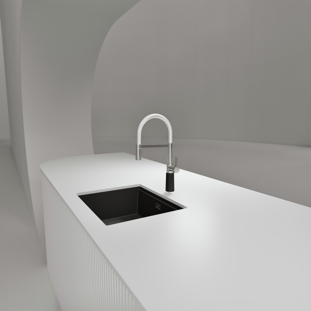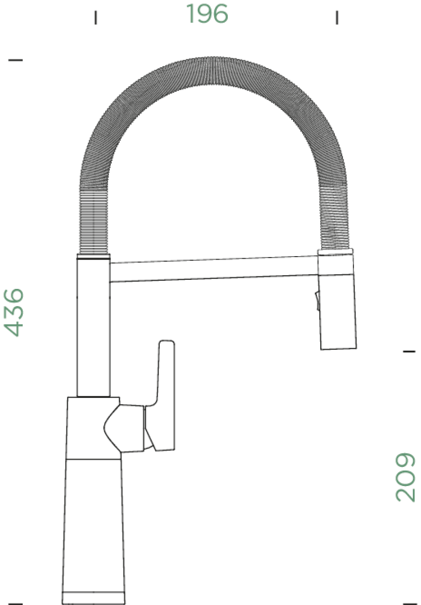 - Festauslauf, Hochdruck, Strahl-Brausefunktion, Rückflussverhinderer, Schwenkbereich 150°