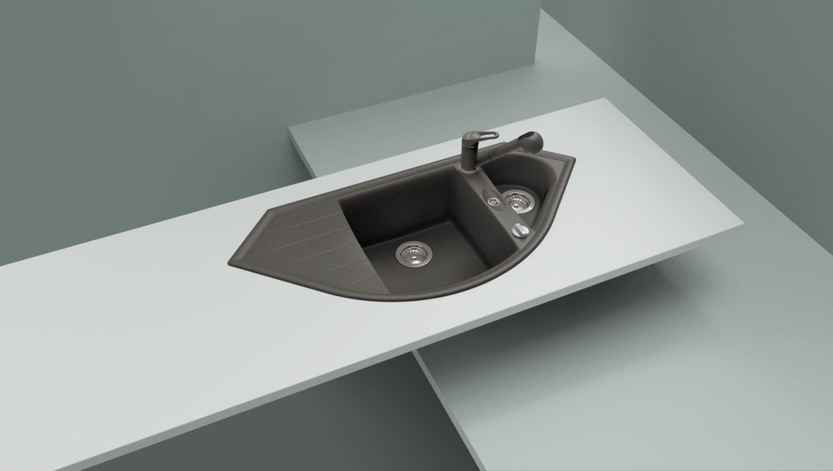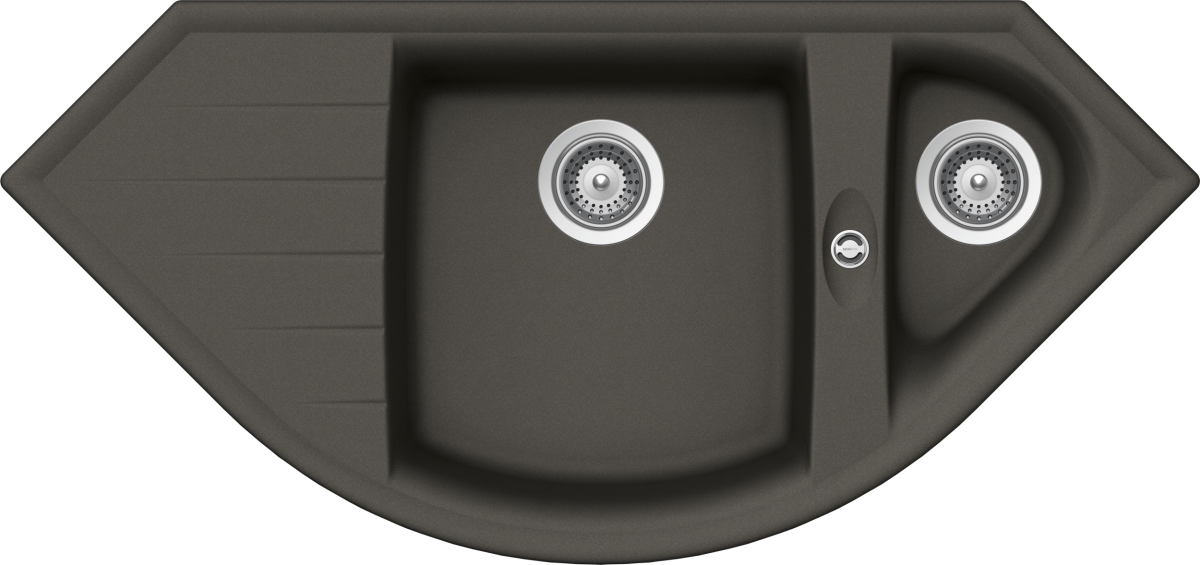 - CRISTALITE®, 1,5 Becken, rechts, inklusive: Ablaufgarnitur 3½'', Korbventil, Excenterbedienung, Chrom, Diamantbohrer SB Light